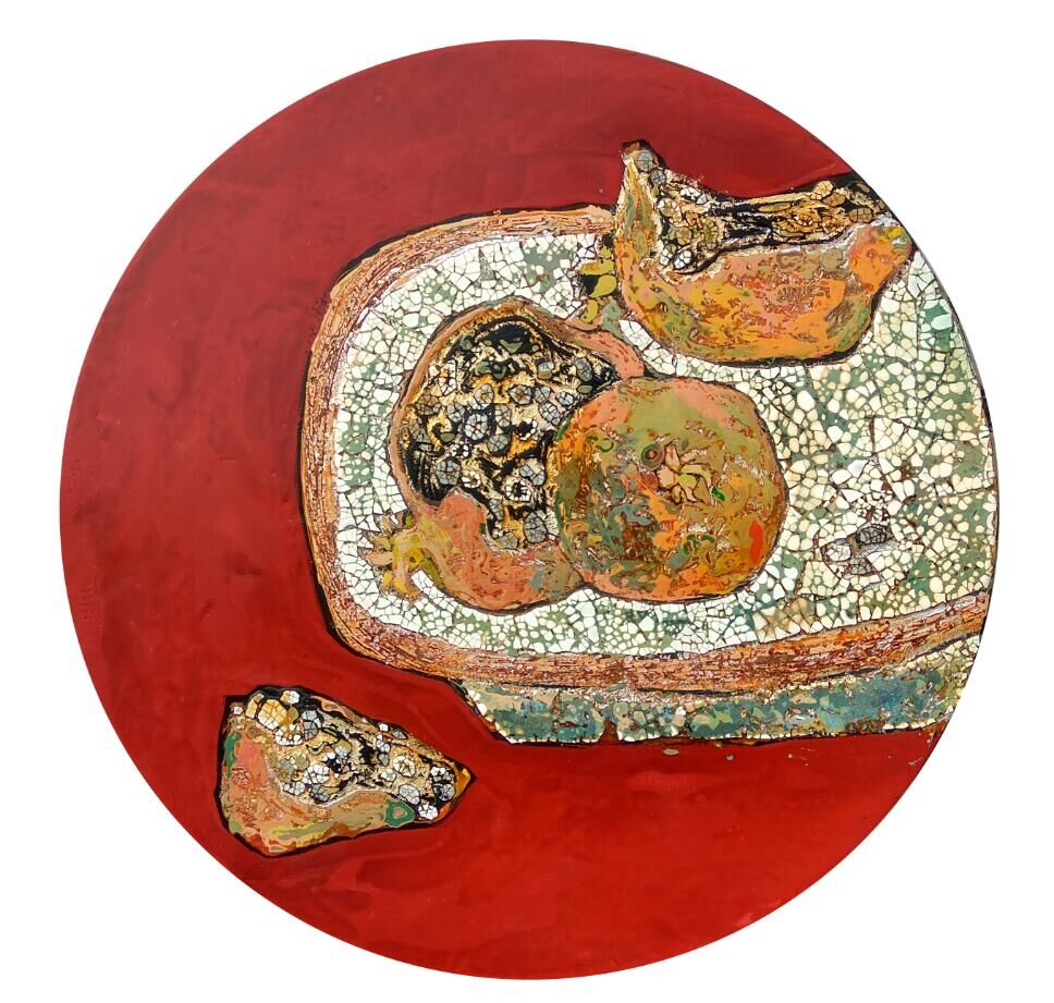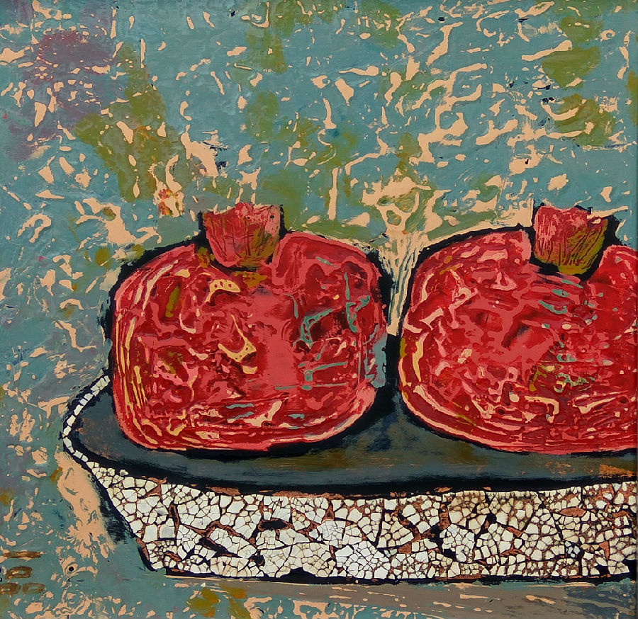 《石榴》漆画30x30cm