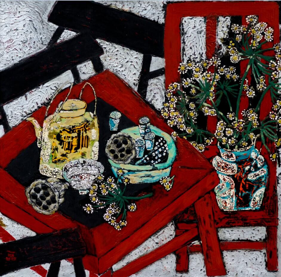 漆画《闲情逸致》80x80cm