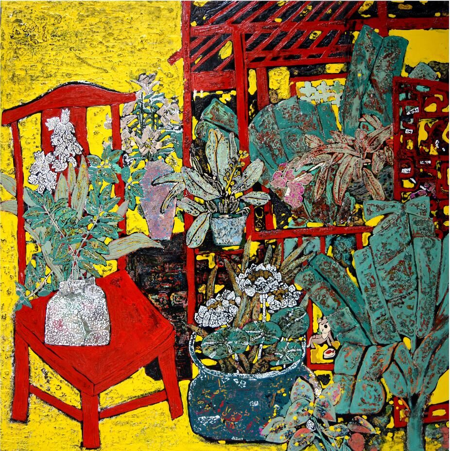 漆画《雨后骄阳》100x100cm