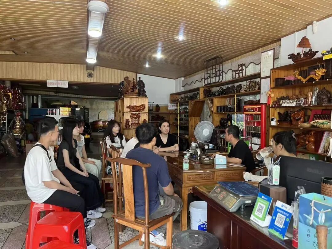 在阴那村,团队受到了镇村干部及茶企代表的热情接待。师生们先后走访了阴那村村史馆、生态茶田以及茶叶生产基地,通过实地考察、听取介绍和深入交流,全面了解阴那山茶叶的历史文化、种植加工工艺、品牌现状及市场定位。