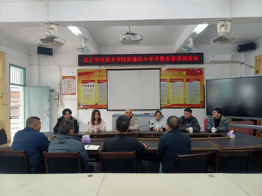 为深入推进美育浸润行动,全方位展现“双百行动”校地协同育人成果,2025年12月25日,嘉应学院美术学院副院长杨帅率教师代表团队走进潘田中学,开展美育浸润交流暨实习教师慰问活动。