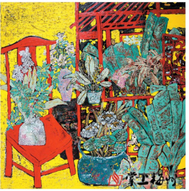 在省级的展览中,获奖数量也有显著增加,共计获奖29件(含学生),获奖级别有历史性地突破。其中,在“庆祝中华人民共和国成立70周年——广东省美术作品展览”(广东省五年一届、规模最大、规格最高的综合性省展)中,我院周庆教授的作品《国之重器——天眼》获银奖,这是我院也是梅州市首次在省级最高规格的画展中获奖,另外,他的作品《新景观》(图4)获 “首届广东省美术教师作品展 ”一等奖,摄影作品《塑》获“2018年广东省第27届摄影展览”银奖(最高奖);在全省的“首届广东省美术教师作品展”中我院陈益品老师的《石榴与释迦》(图5)、梁嘉老师的作品《大襟衫》等分获两个二等奖、两个三等奖;在“首届粤港澳大湾区高校美术作品展暨第三届广东省高校美术作品学院奖双年展”中,张利锋、张志祥教授的《丰年系列之五》(图6)、王立民教授的《红柳烤肉》、周庆教授的《齐秦图》分获二等奖;冯百常副教授的《达夫楼》、邓海林老师的《和谐图》等在广东省美术家协会、广东省书法家协会、广东省摄影家协会联合主办的“广东省第十五届美术书法摄影联展”取得2个银奖、1个铜奖和4个优秀奖的好成绩。广东省美术家协会主办的“广东省第六届漆画作品展”陈益品老师的作品《梦境家园》获优秀奖。