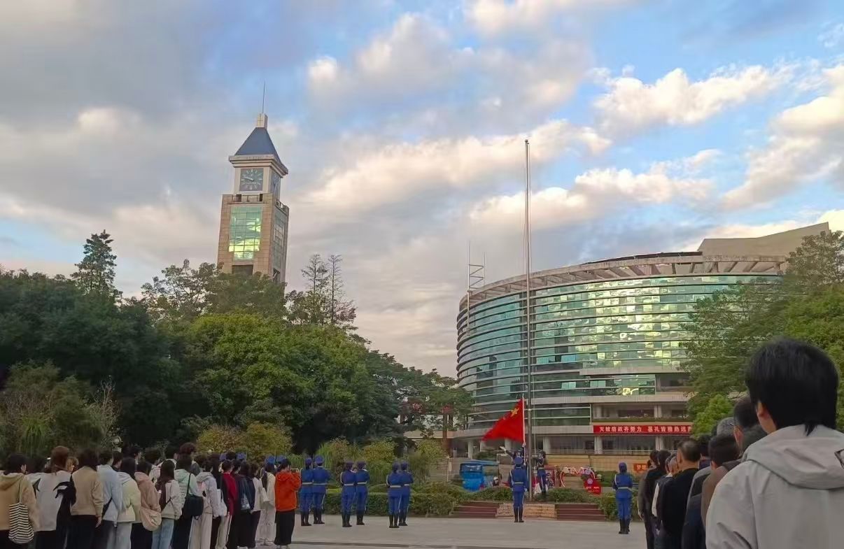 【青春向党,奋斗强国 | 美术学院举行升旗仪式】嘉应学院美术学院美术学院举行升旗仪式2025年11月24日 11月24日清晨,美术学院全体师生齐聚学校世纪广场,共同参与了一场庄严肃穆的升旗仪式。本次升旗仪式由学院党委副书记刘霞主持。 早上7时,参与仪式的师生们准时到达广场,整齐列队,现场秩序井然,大家静静地等待着升旗仪式的开启。 7时10分,升旗仪式正式拉开帷幕。国旗护卫队的同学们身着统一制服,身姿挺拔,迈着整齐而有力的步伐,将鲜艳的国旗护送上升旗台。 他们眼神坚定,每一个动作都精准规范、优雅庄重,整齐划一的队列尽显校园青春风采。在激昂的国歌声中,全体师生齐声高唱。大家共同见证着国旗在初升的晨光中,在校园的上空缓缓升起。随着朝阳的光芒逐渐洒下,升旗仪式圆满结束,师生们有序退场。此刻,每一个人的心中都涌动着对祖国的深情,也怀揣着对未来的无限憧憬。 此次升旗仪式,不仅仅是一种仪式,更是一次生动的爱国主义教育课。它有力地唤起了师生们的爱国热情和社会责任感,进一步坚定了大家与党同向、与国同行、与时代共进的信念。相信在这样浓厚的爱国氛围熏陶下,美院学子们能珍惜时光,努力拼搏,用青春和才华描绘美好未来,为强国建设、民族复兴伟业添砖加瓦,奏响属于青春的激昂乐章。
