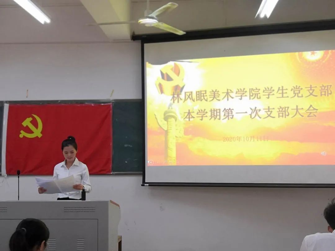 2020年10月11日,林风眠美术学院学生党支部于艺术宫206教室召开了本学期第一次支部大会。此次支部大会的主要内容是讨论对1701班饶轩宇、曾丽娜、罗淑君、徐美妍、梁奖翘;1703班洪秋燕、古政威;1706班梁奋棋;1801班廖碧霞、王嘉丽;1802班罗润杰、郑琳;1803班蔡娜、秦靖奕;1804班张 雪、周炜源;1806班邱钦伟、袁翁发、严鑫;1807班林柏良、姜晓薇21名发展对象转预备党员的问题。学生党支部全体党员以及21名发展对象参加了此次会议。