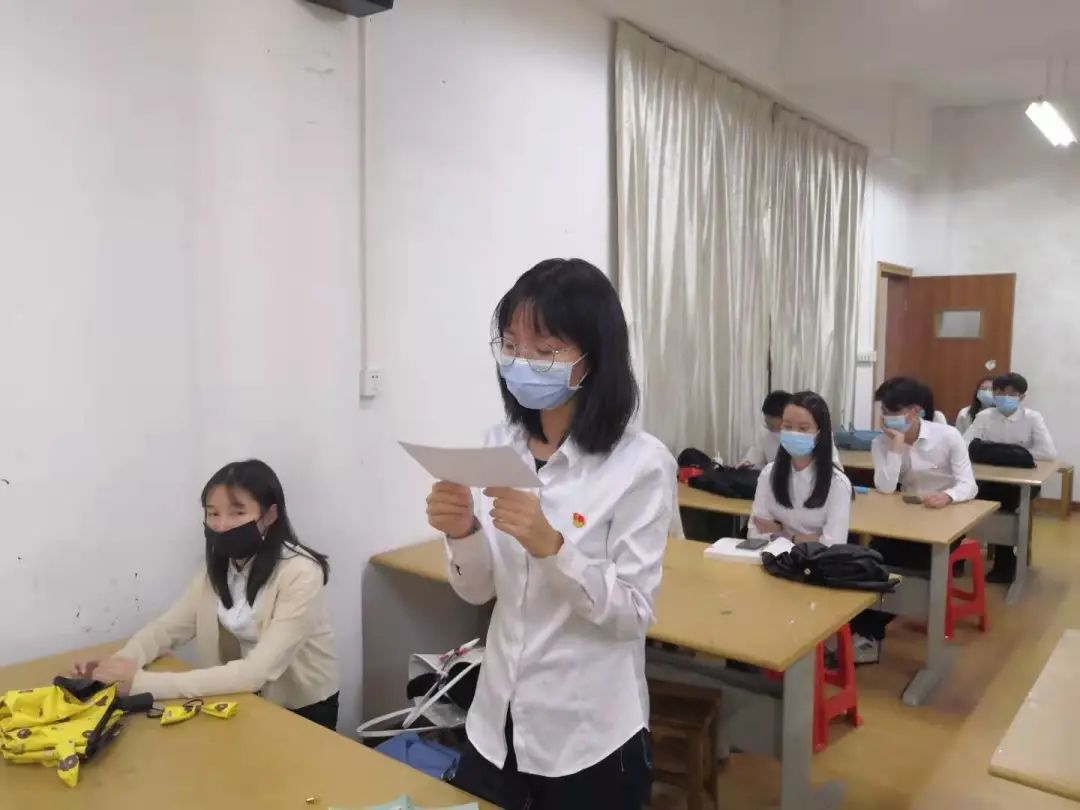 党支部书记罗剑老师宣读党支部综合考察意见,正式党员通过不记名的方式对陶港归等7名预备党员进行投票,罗剑老师宣布党支部大会决议结果。