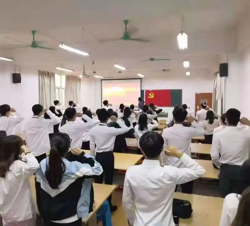 本学期发展的两批党员进行入党宣誓,学生党支部书记罗剑老师领誓