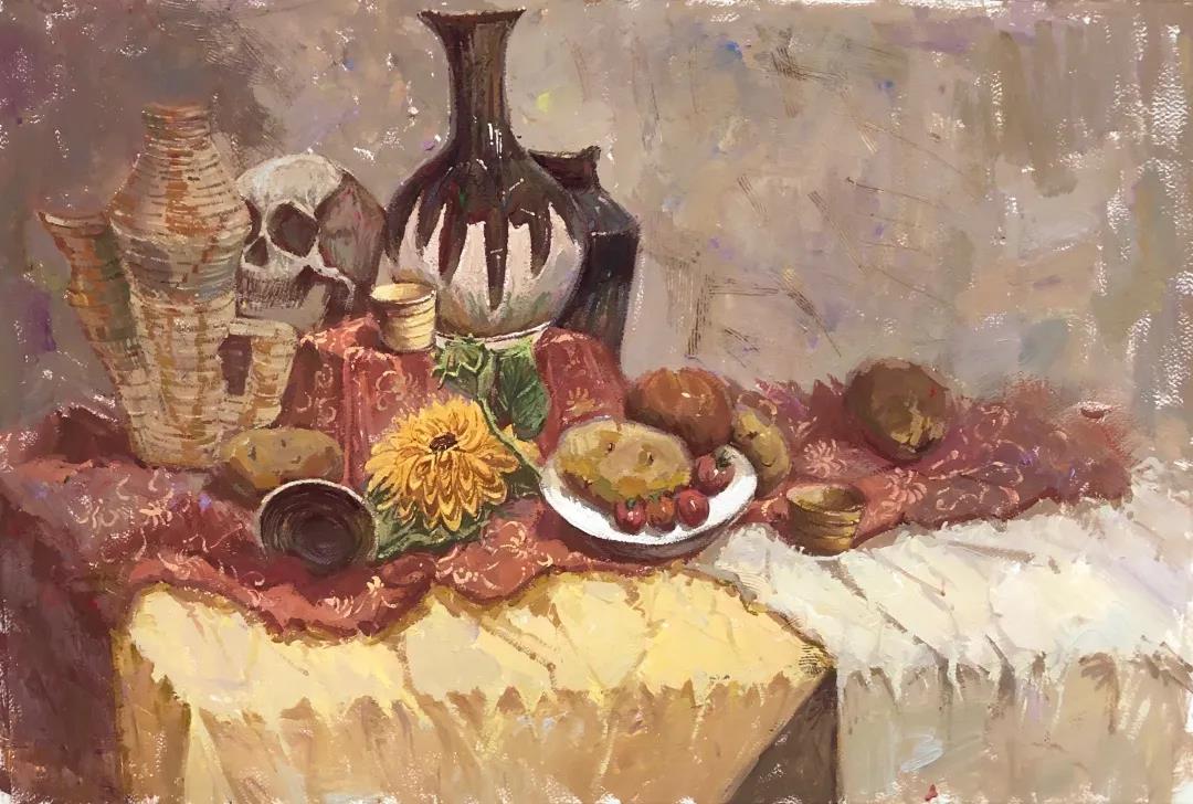 色彩静物写生是美术专业的重要基础课程,也是指导学生将所掌握的专业理论与技能应用于创造性实践的重要环节,通过静物写生创作让学生掌握色彩创作的基本要点,掌握创作的方法包括构图、表现形式、绘画语言以及色彩等提高学生的创作才能。