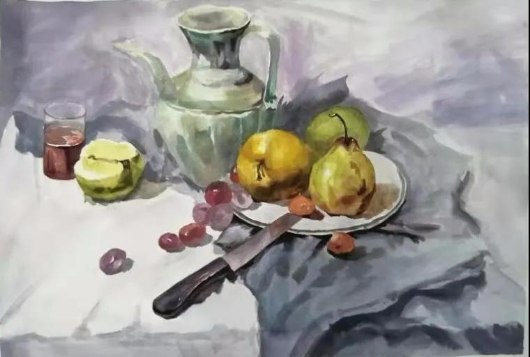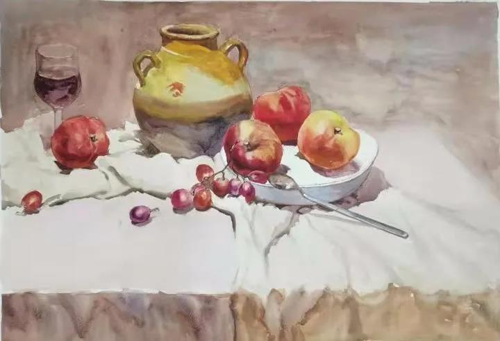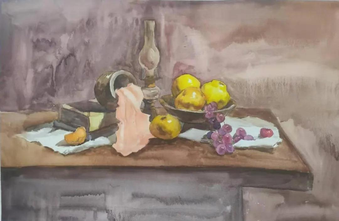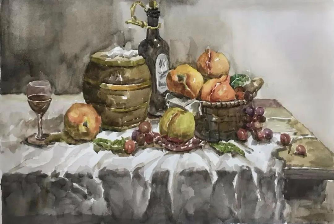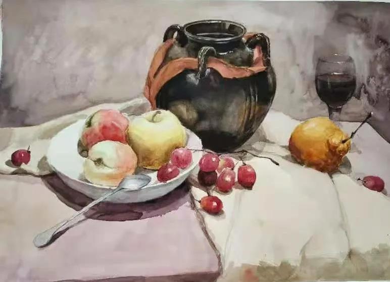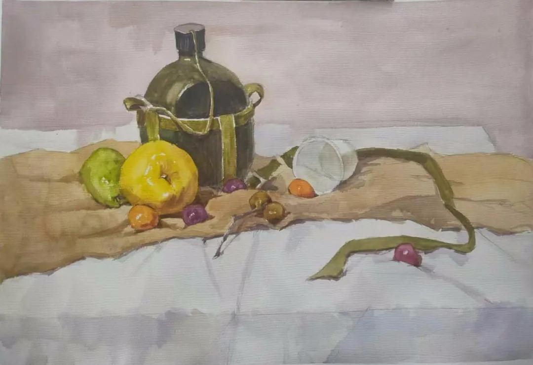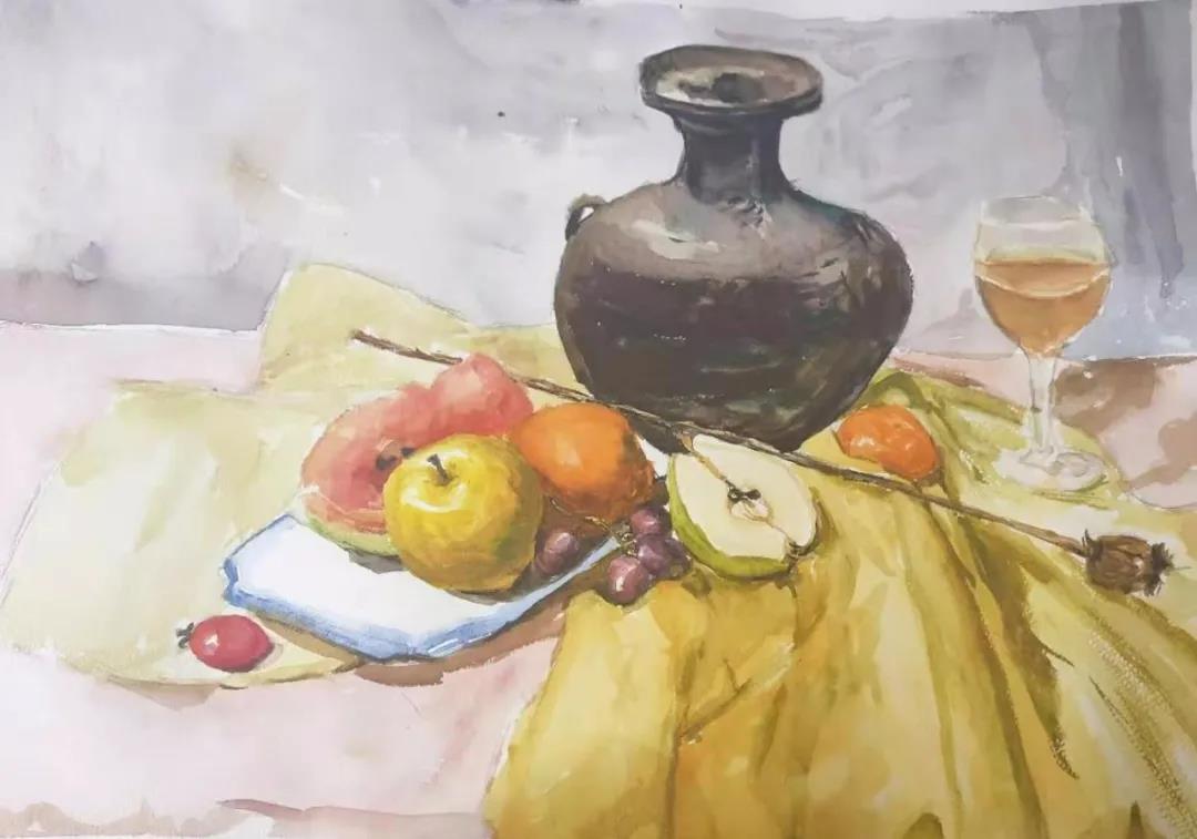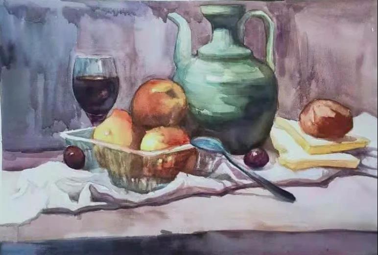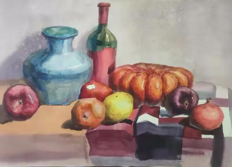 水彩静物是高校水彩绘画教学的基础课,通过学习,主要培养学生的色彩感受力,色彩观察能力、色彩控制力、色彩造型能力、整体的观察理念和构图能力等,夯实学生的基本功。提高学生的审美素养,激发学习热情,培养创造能力,为进一步的专业课程学习打下坚实的基础。