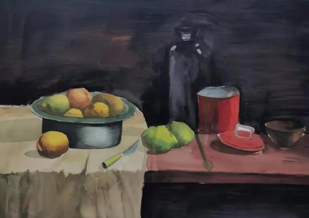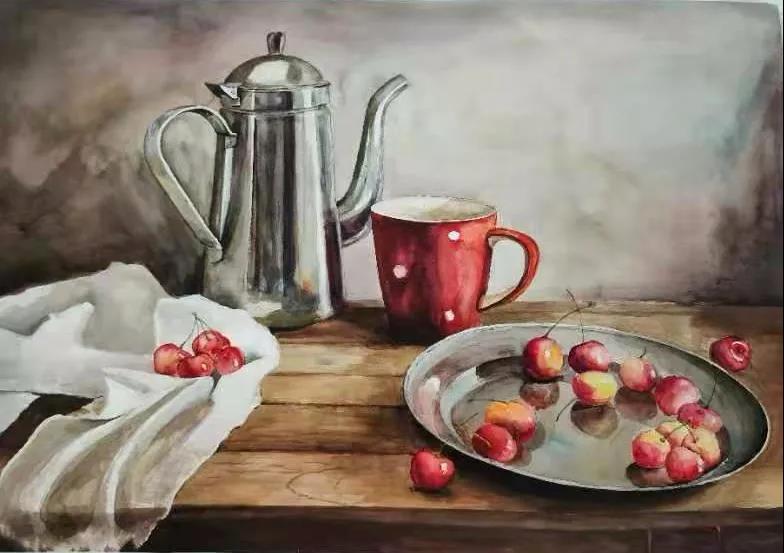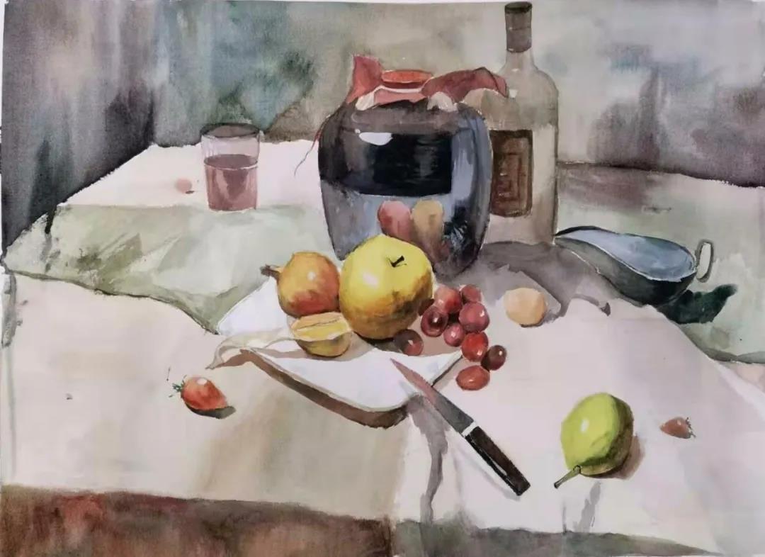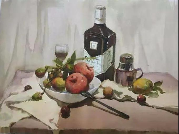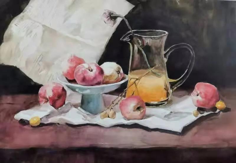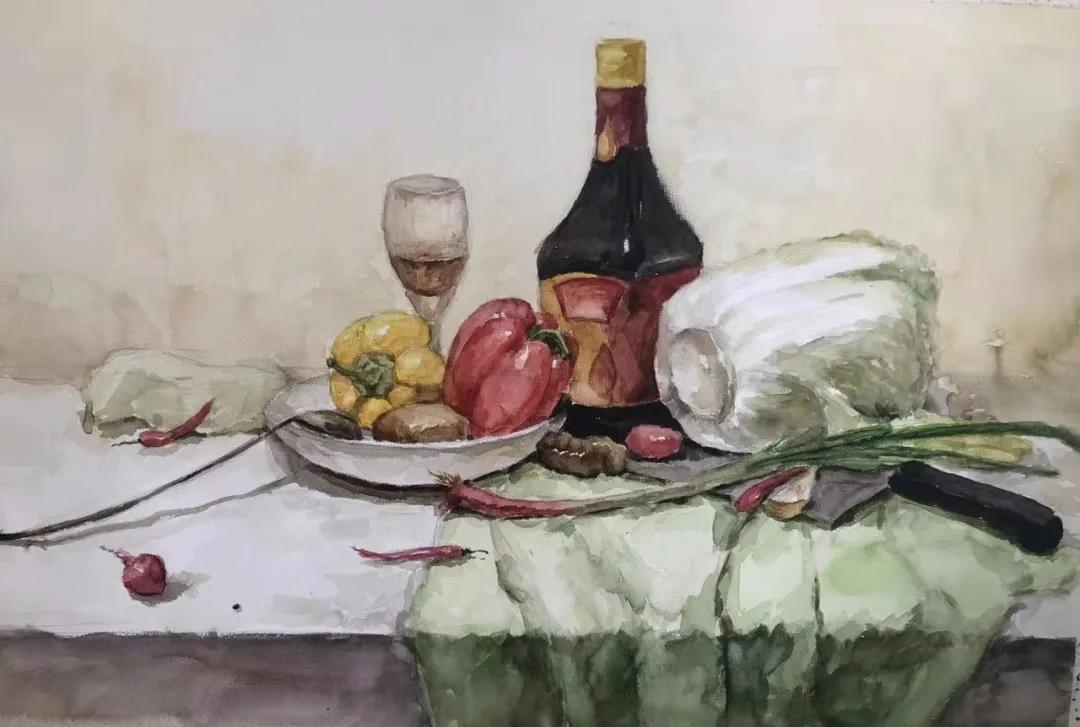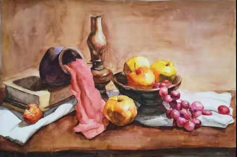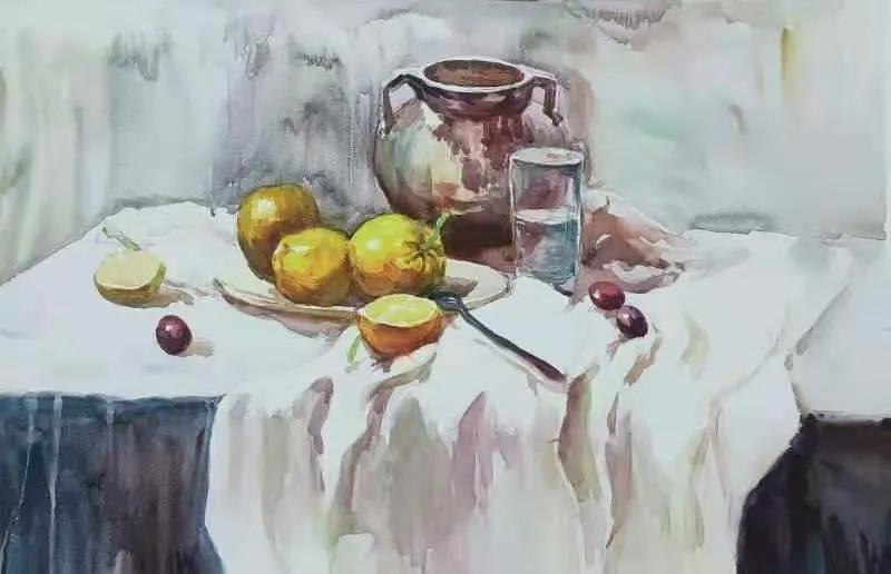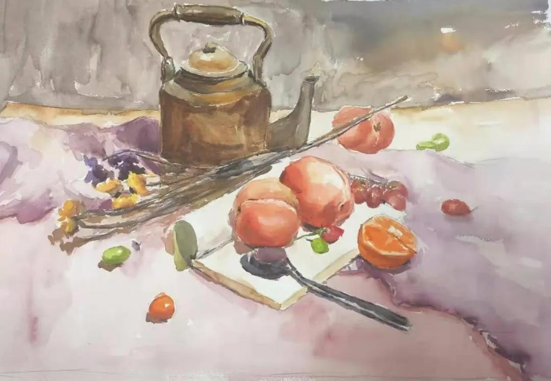 水彩静物是高校水彩绘画教学的基础课,通过学习,主要培养学生的色彩感受力,色彩观察能力、色彩控制力、色彩造型能力、整体的观察理念和构图能力等,夯实学生的基本功。提高学生的审美素养,激发学习热情,培养创造能力,为进一步的专业课程学习打下坚实的基础。