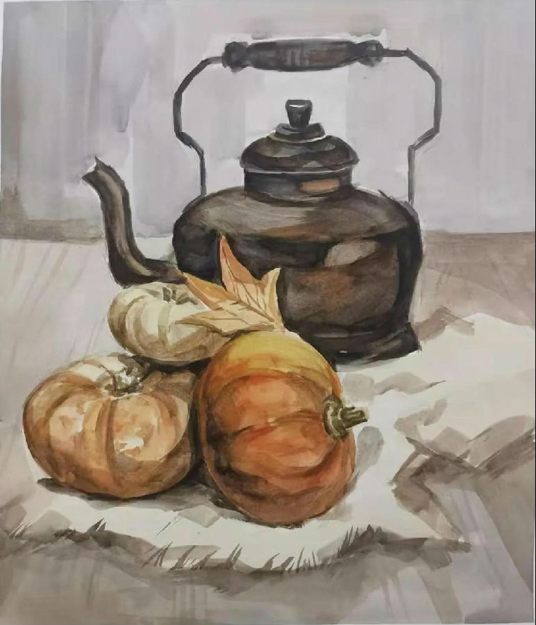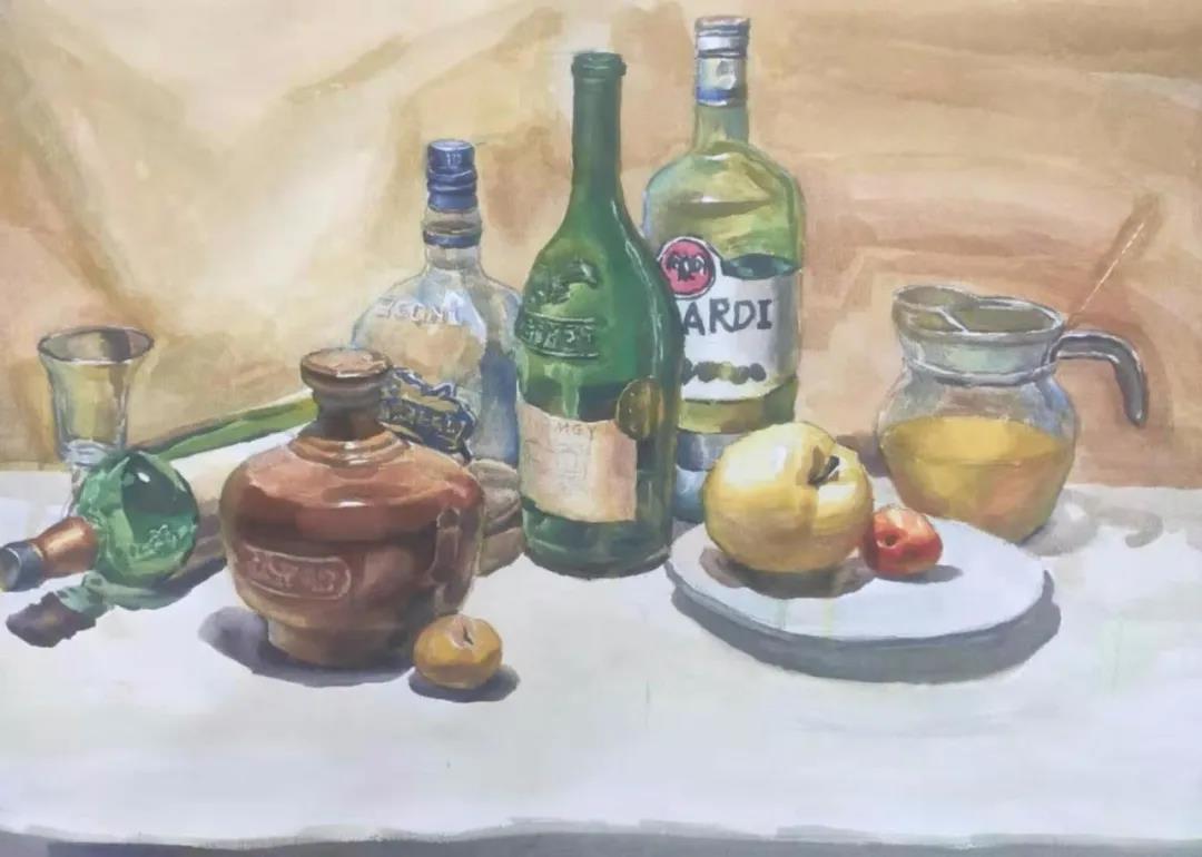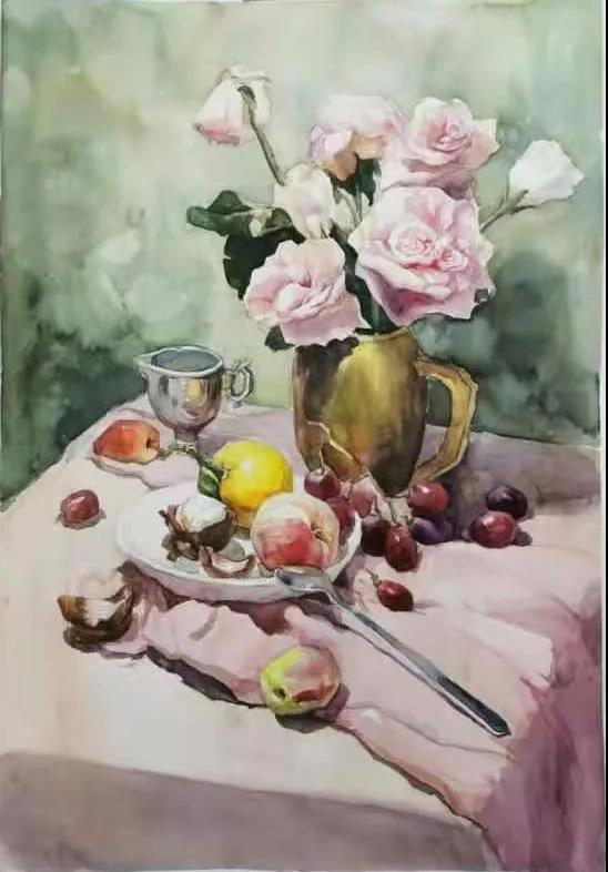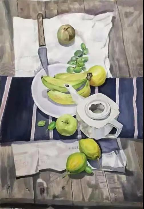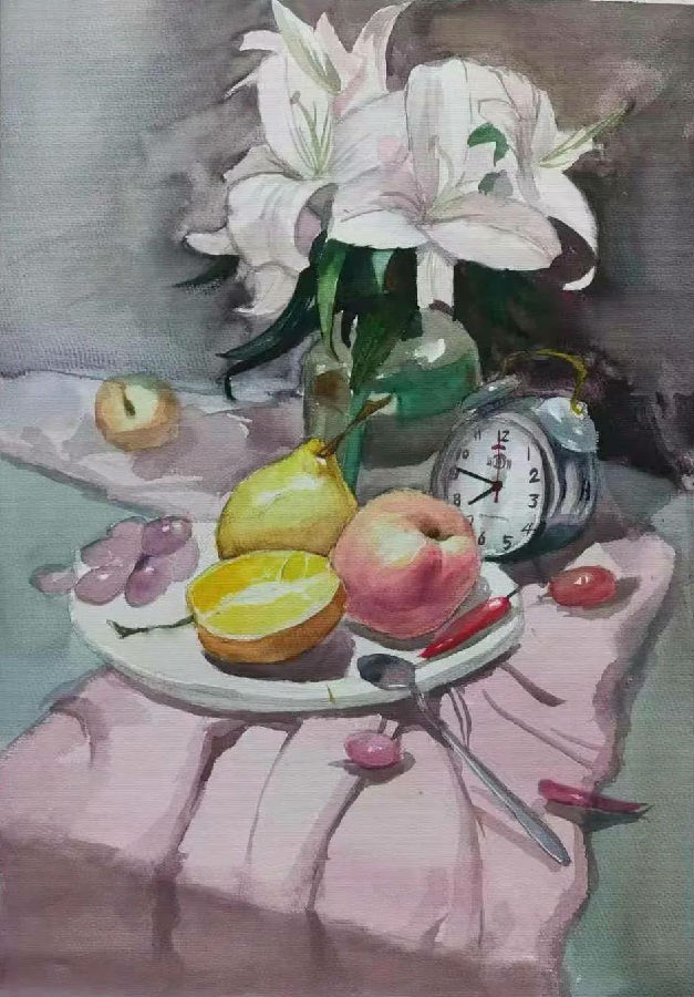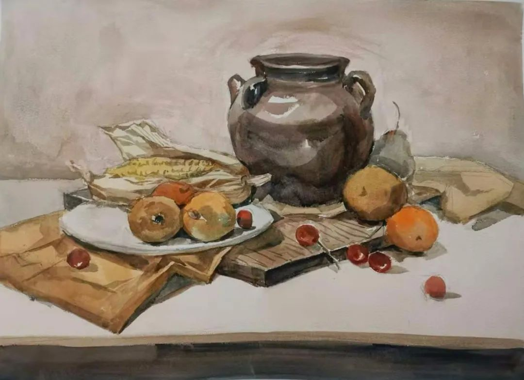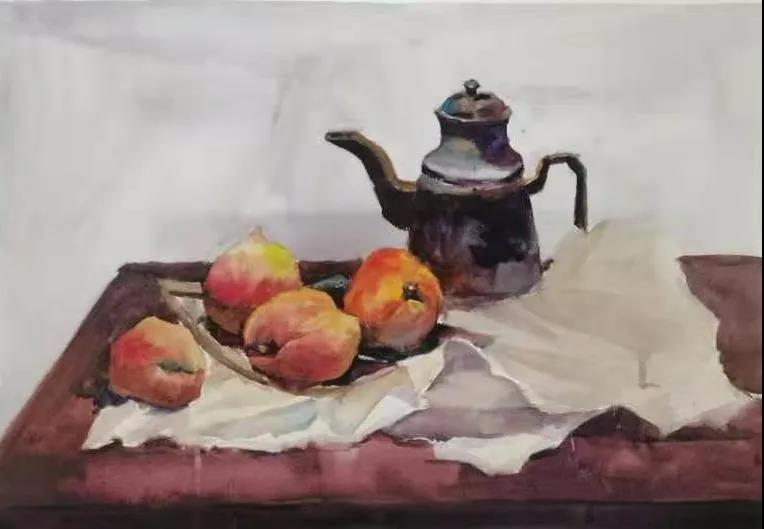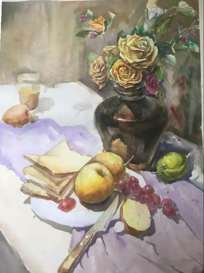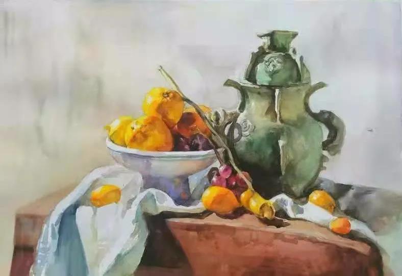水彩静物是高校水彩绘画教学的基础课,通过学习,主要培养学生的色彩感受力,色彩观察能力、色彩控制力、色彩造型能力、整体的观察理念和构图能力等,夯实学生的基本功。提高学生的审美素养,激发学习热情,培养创造能力,为进一步的专业课程学习打下坚实的基础。