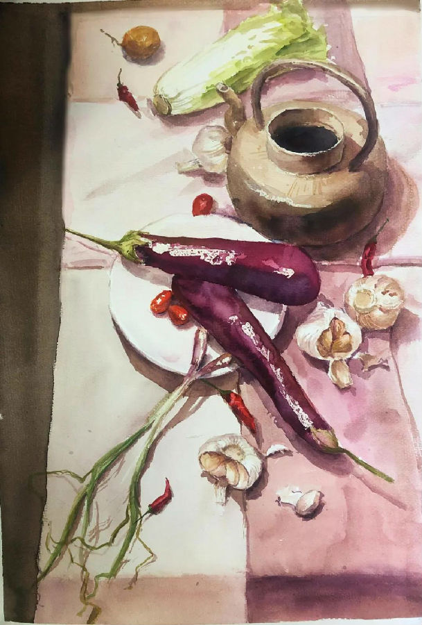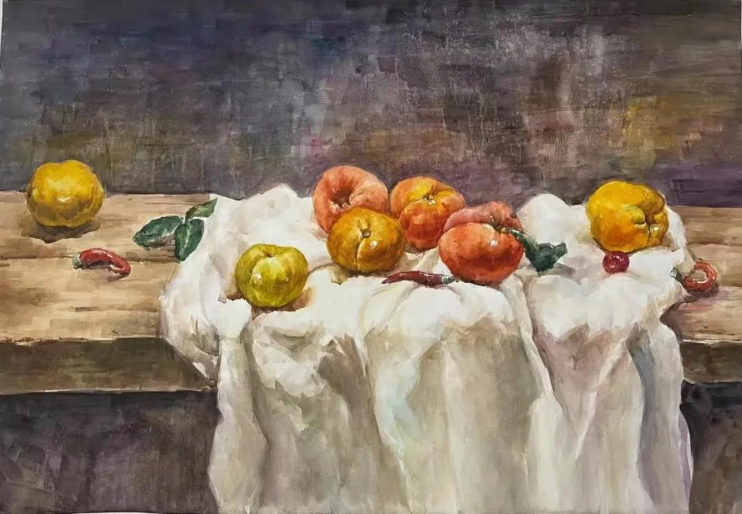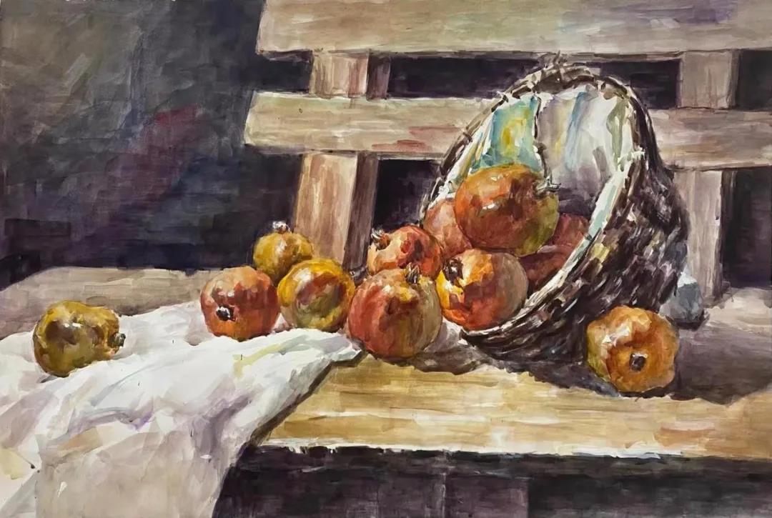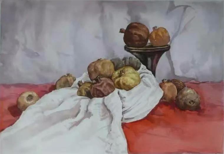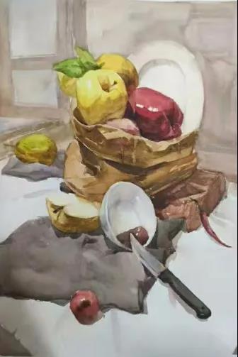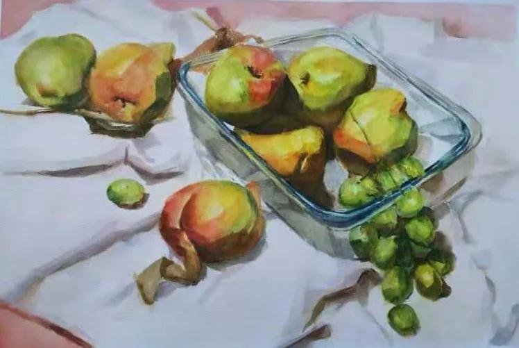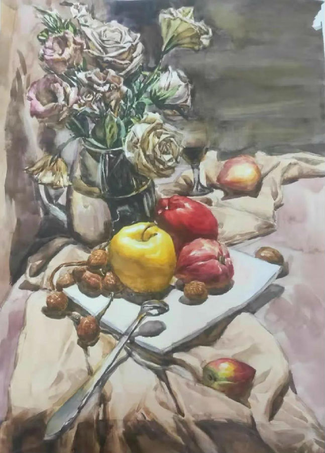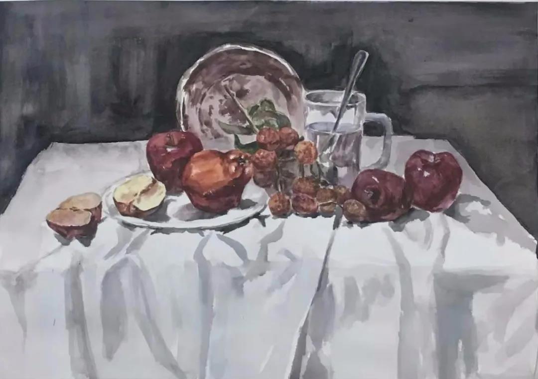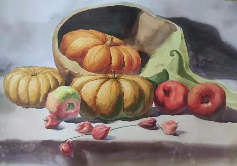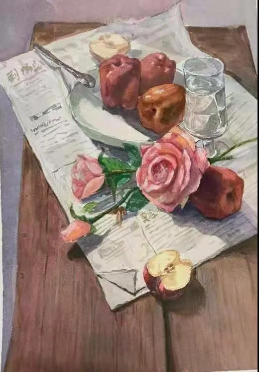 水彩静物是高校水彩绘画教学的基础课,通过学习,主要培养学生的色彩感受力,色彩观察能力、色彩控制力、色彩造型能力、整体的观察理念和构图能力等,夯实学生的基本功。提高学生的审美素养,激发学习热情,培养创造能力,为进一步的专业课程学习打下坚实的基础。