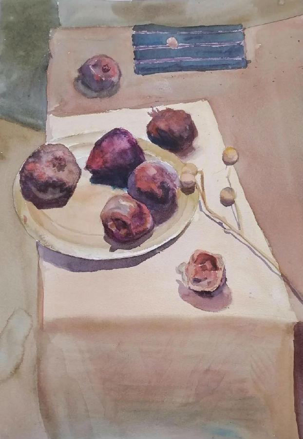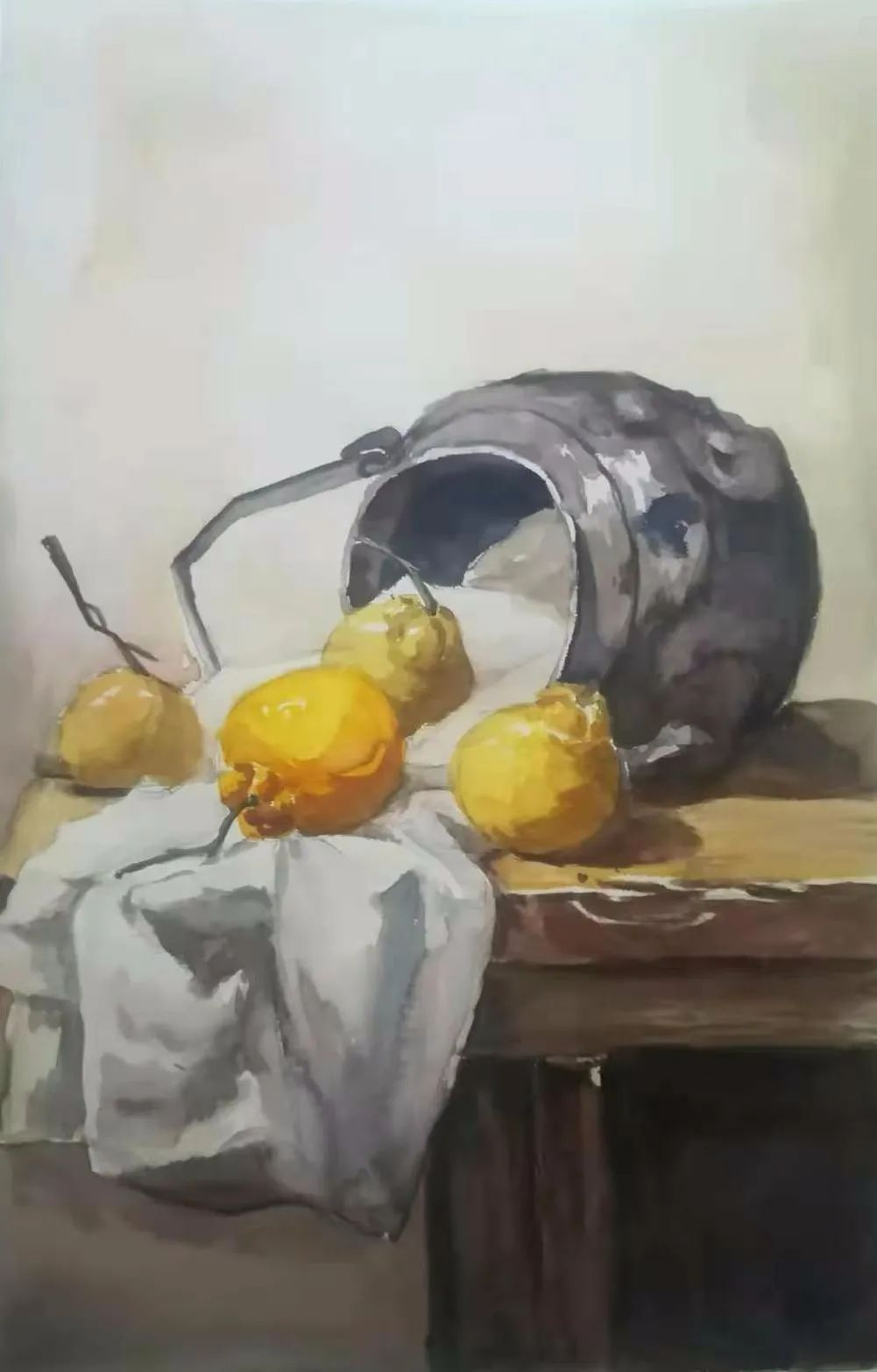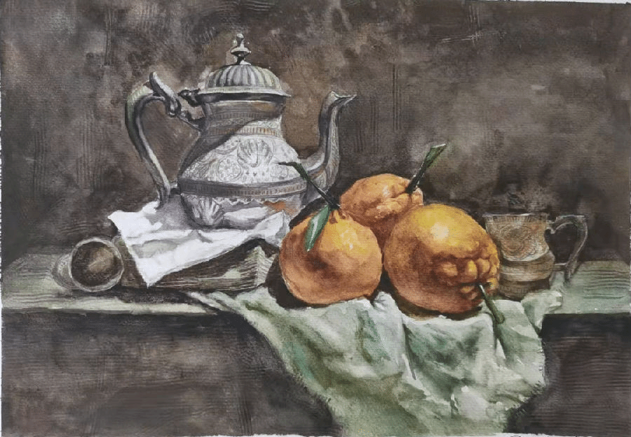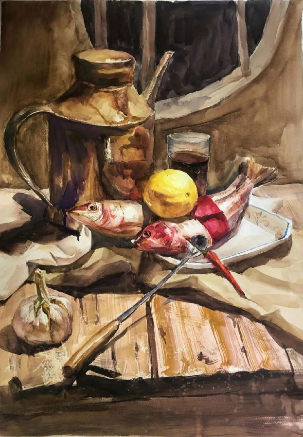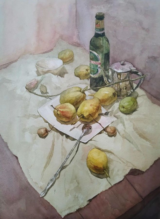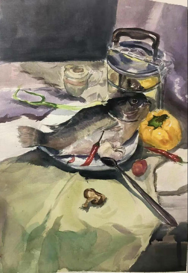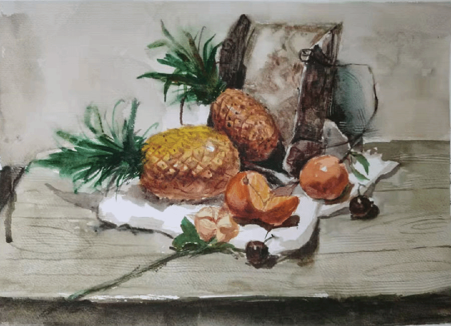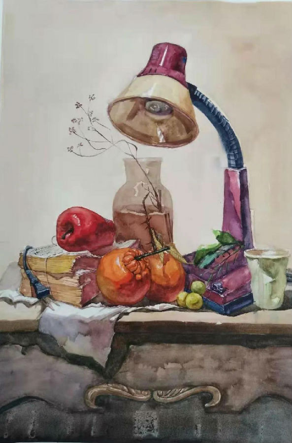 水彩静物是高校水彩绘画教学的基础课,通过学习,主要培养学生的色彩感受力,色彩观察能力、色彩控制力、色彩造型能力、整体的观察理念和构图能力等,夯实学生的基本功。提高学生的审美素养,激发学习热情,培养创造能力,为进一步的专业课程学习打下坚实的基础。