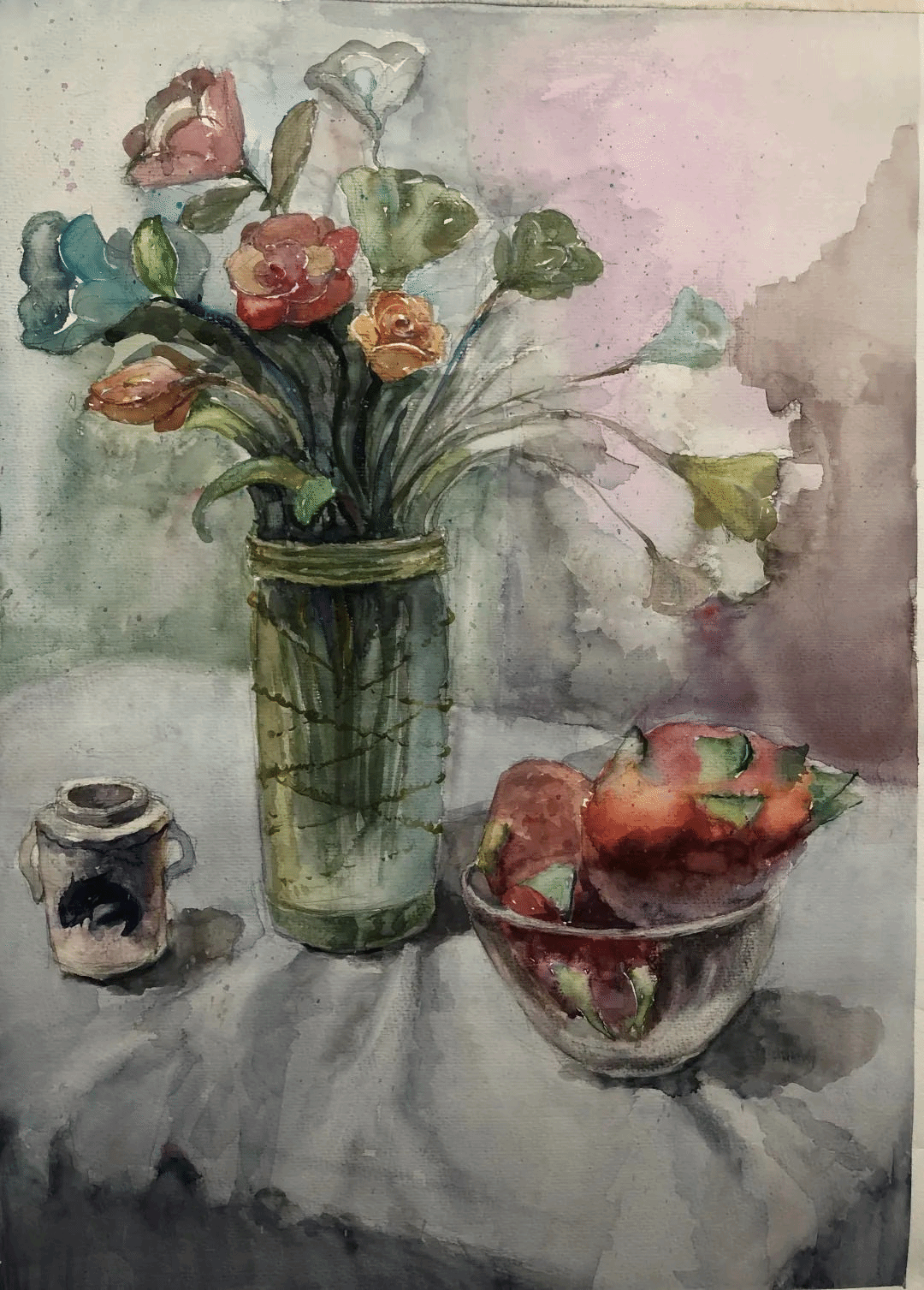 色彩静物写生是美术专业的基础课程之一。通过画家对光线、色彩、空气、静物物体的主观构造,从而构成新颖灵巧、格调高雅、用笔凝炼的静物作品。通过学习提高学生的审美素养,激发学习热情,培养创造能力,为下一步的专业课程学习打下坚实的基础。