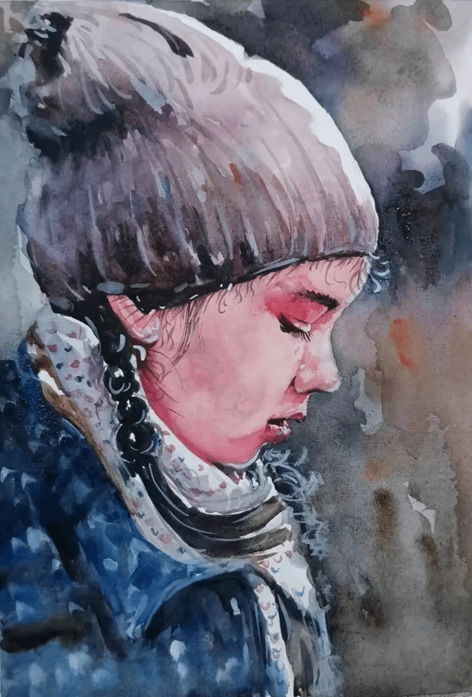 水彩头像是水彩专业方向的重要实践课程,通过学习让学生进一步理解人物的头部结构,掌握水彩头像的作画方法步骤和色彩头像写生的观察方法,学习运用水彩表现各种不同的人物对象,提高运用水彩造型的能力以及色彩感受力和艺术素养。