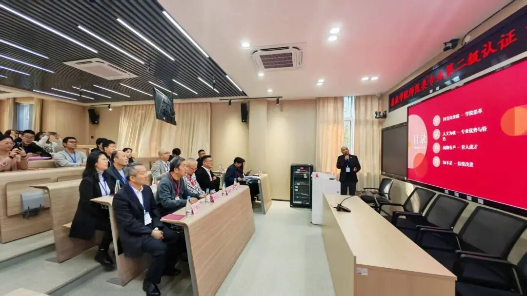 12月3日至4日教育部师范类专业认证专家组在我院开展全面深入的现场考查工作。专家组一行走访了宪梓艺术宫、丽群图书馆等主要教学场所,实地考察教学设施与环境。深入课堂一线进行听课看课,并与学校领导、学院领导、专业教师、在校学生及校友代表进行了多场深度访谈与座谈,同时细致查阅了课程大纲、毕业论文、实习档案等教学材料。期间,专家组还专程赴梅县外国语学校等实践基地考察,与该校领导及我校实习生指导教师深入交流,全面评估师范生实践教学环节的培养质量。整个考查过程严谨高效,学校各部门全力配合,全面展现了专业建设的常态与成效。