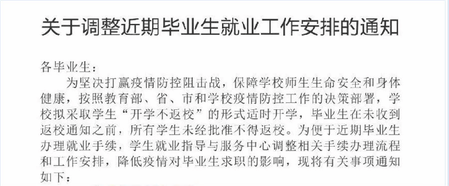 抗疫情 | 关于调整近期毕业生就业工作安排的通知