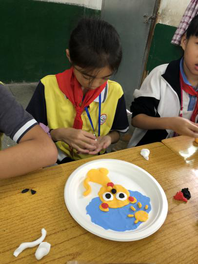 开展手工制作教学实践课的意义在于培养学生对粘土彩塑的兴趣,增强学生动手创作的意识,促进学生审美意识的养成。制作粘土作品时,学生们满怀激情,认真制作,课堂现场氛围活跃。