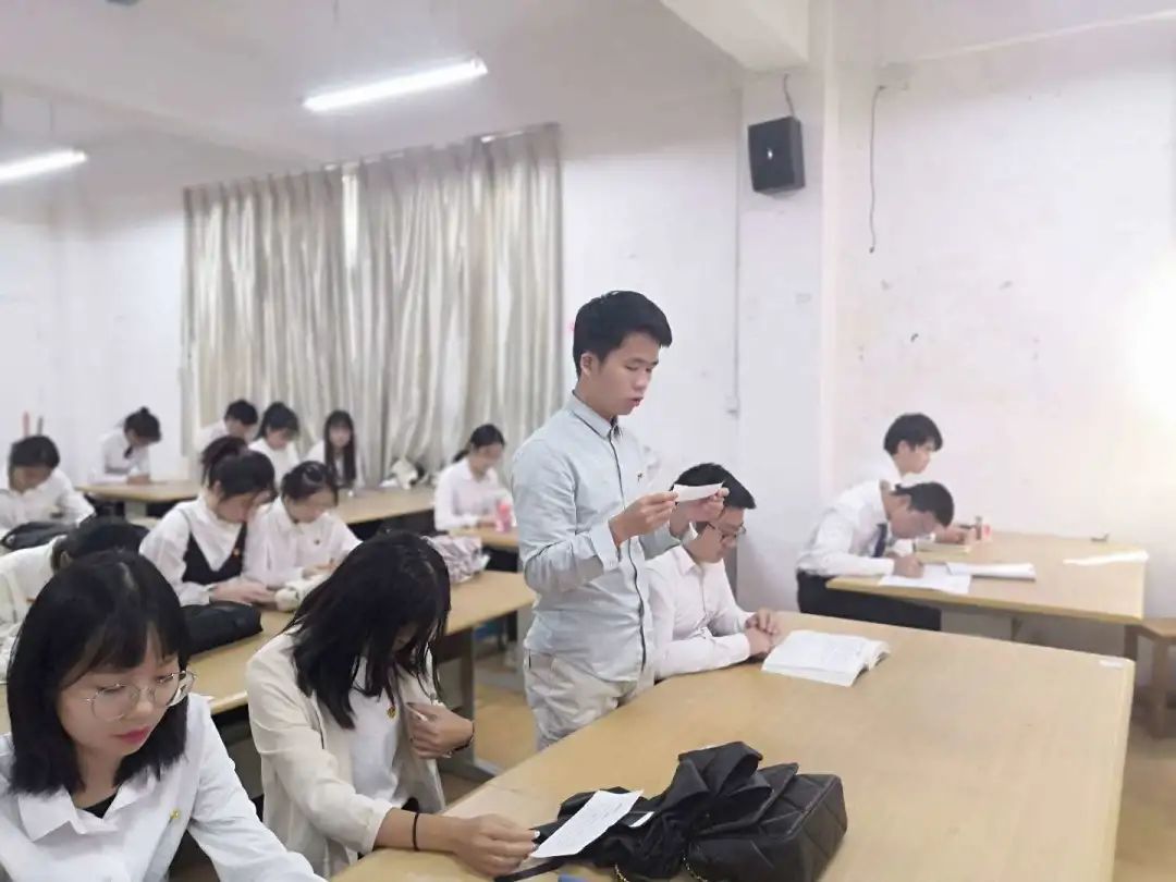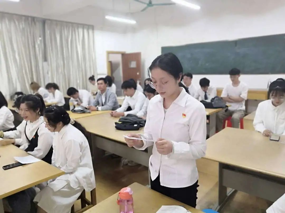 党支部书记罗剑老师宣读党支部综合考察意见,正式党员通过不记名的方式对曾佩拉等12名发展对象进行投票,罗剑老师宣布党支部大会决议结果。