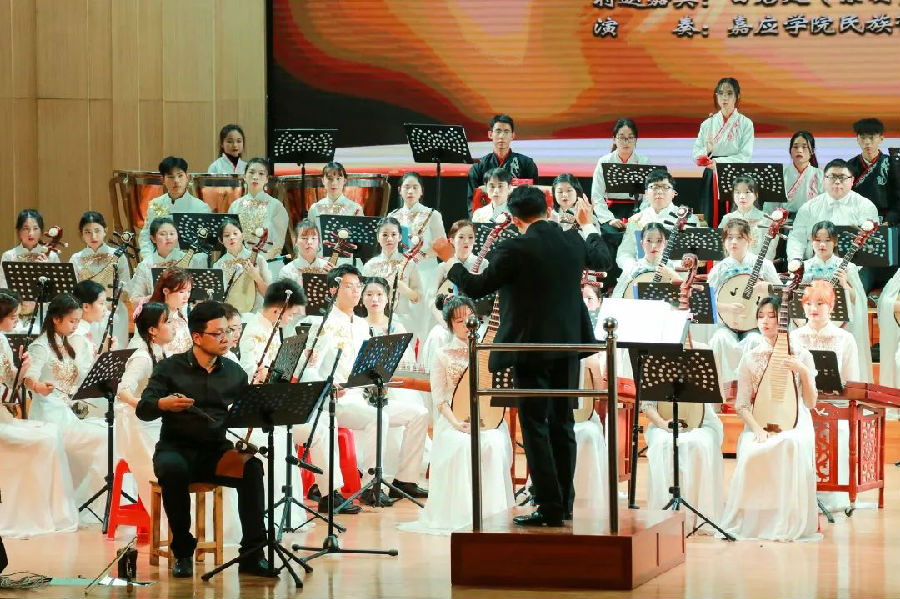 指挥老师声情并茂地指挥着乐曲