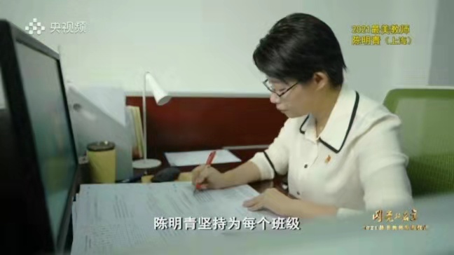 陈明青坚持为每个班级设计专属教案,还创造性地提出以思政老师主导、各科老师参与的联合备课模式。用“大思政课”的理念培养学生的政治思维,真正让思政课成为照亮学生们思想的指路明灯。