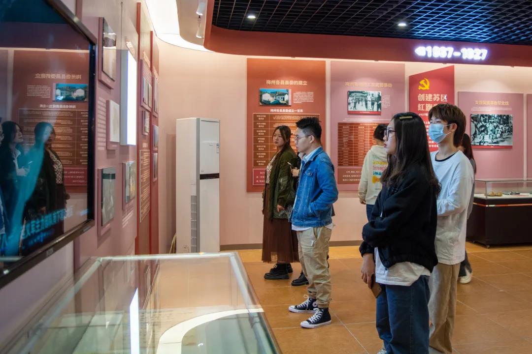梅州是广东唯一全城属原中央苏区范围的地级市,有着深厚的红色文化底蕴。展馆为我们展示了从1919年至今,梅州是如何在中国共产党的领导下一步步发展起来的。现场的同学们严肃认真,通过历史文物,见证了中国共产党的的光辉历程,见证了梅州的发展。从“开天辟地,春雷激荡”开始,到1925年梅州第一个党支部建立;从1927年爆发三河坝战役,到土地革命;从建国后社会主义改造,再到如今各行各业的蓬勃发展。这些事实告诉我们,梅州的发展离不开党的领导,中国的发展更离不开党的领导!