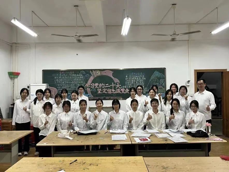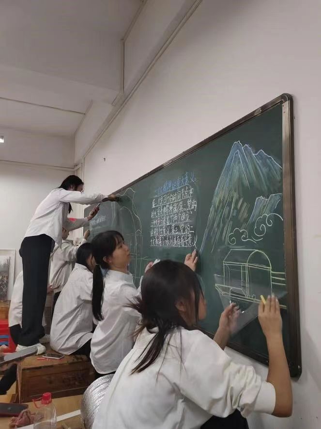 为深入学习贯彻党的二十大精神,林风眠美术学院学生党支部于2023年11月1日晚上,在艺术宫206室开展了以“黑板载最美中华,青年赴远大征途”为主题,以“党的二十大精神”为内容的黑板报创作实践活动。