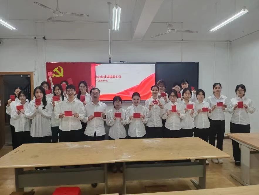 为了缅怀先烈,锤炼党性修养,林风眠美术学院学生党支部于2023年11月2日晚上,在艺术宫206室开展主题实践活动,观看红色电影《长津湖》和制作影评卡片。