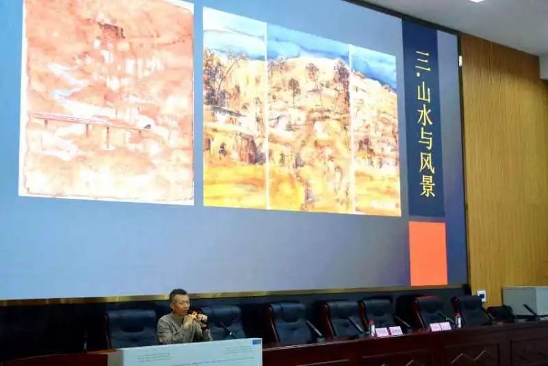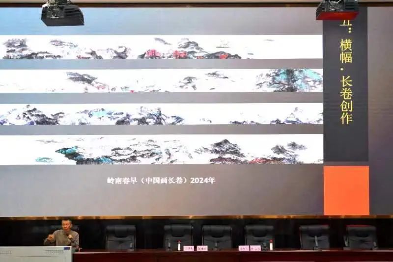 讲座期间,黄教授通过展示与分析这些优秀作品,以深入浅出的方式揭示了美术创作的核心要义。他强调,美术创作可以从宏大的题材切入,同时也不应忽视生活中的细微美好。创作者应精心构思构图与形式感的排列组合,选取独特视角与色调,勇于尝试山水与风景题材的创新表达,追求新颖的视觉效果。