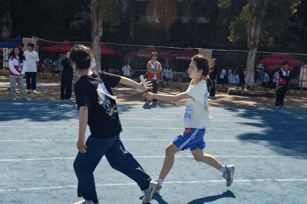 接着,我们迎来了接力赛,接力赛无疑是全场的人气最佳,各班级的接力队员们在观众的加油声和欢呼声中迅速起跑,完美衔接,每一次完美的交接都是经过努力训练得来的成果,都是对团队默契和信任的考验。观众台的欢呼声、呐喊声此起彼伏,气氛紧张又激动人心。