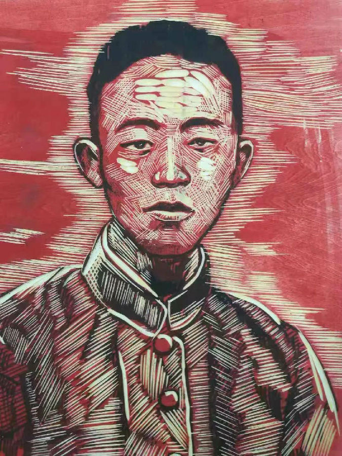 《一大代表邓恩铭》(祖籍梅州)周庆老师 版画