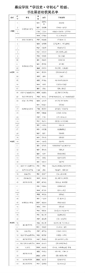 为庆祝中国共产党建党100周年,回顾党的奋斗历程与光辉历史,展现建党以来的丰功伟绩,始终铭记嘱托,不忘初心,牢记使命,教育我校师生增进爱党之情、常怀忧党之心、恪尽兴党之责,营造浓郁的宣传教育氛围,按照《嘉应学院2021年“庆百年,颂党恩,展新貌”主题系列活动方案》的通知精神,由机关党委、教师教育发展中心、工会、林风眠美术学院、各二级单位党组织承办的嘉应学院“学四史•守初心”绘画、书法展活动已顺利举行,共收到师生作品232份,其中教师特邀作品11份,学生作品221份(美院143份,其它学院78份),活动取得了预期效果。