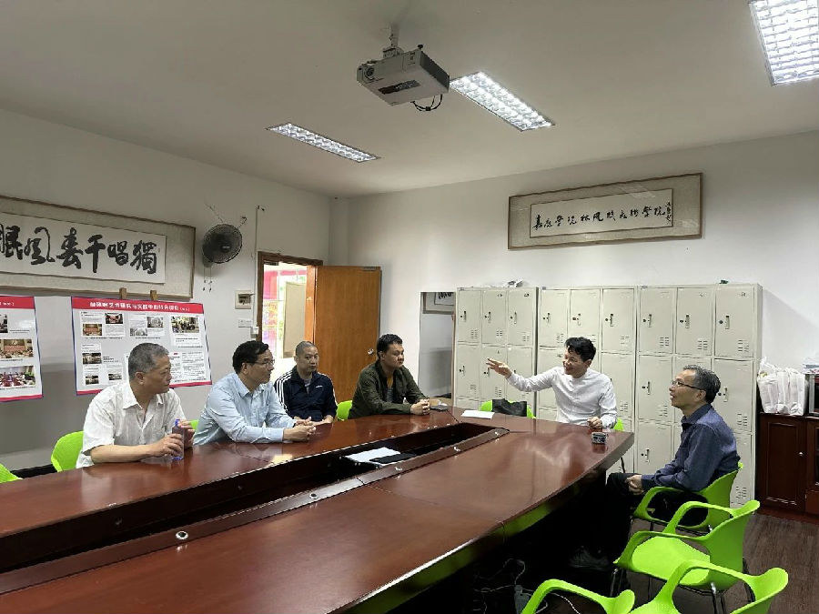 彭永彬书记代表学院对周浩明教授的到来表示热烈欢迎,张志祥院长介绍了学院近年来的学科建设与人才培养情况以及当前结合专业特色开展的“双百行动”的思路和做法。他提到,我院充分运用梅州客家文化元素特点,将“美育浸润”、“双百行动”、“百千万工程”作为学科建设与人才培养的重要载体,积极发挥高校所能,与结对地区联动共进,将课堂搬进田野,在实践中培养学生的创新能力,提高学生对理论的理解,共同促进乡村振兴。周教授对我院的育人方向与思路给予了高度评价,建议持续挖掘梅州文化特色,结合本地需求开展服务地方工作,为乡村高质量发展贡献一份力量。