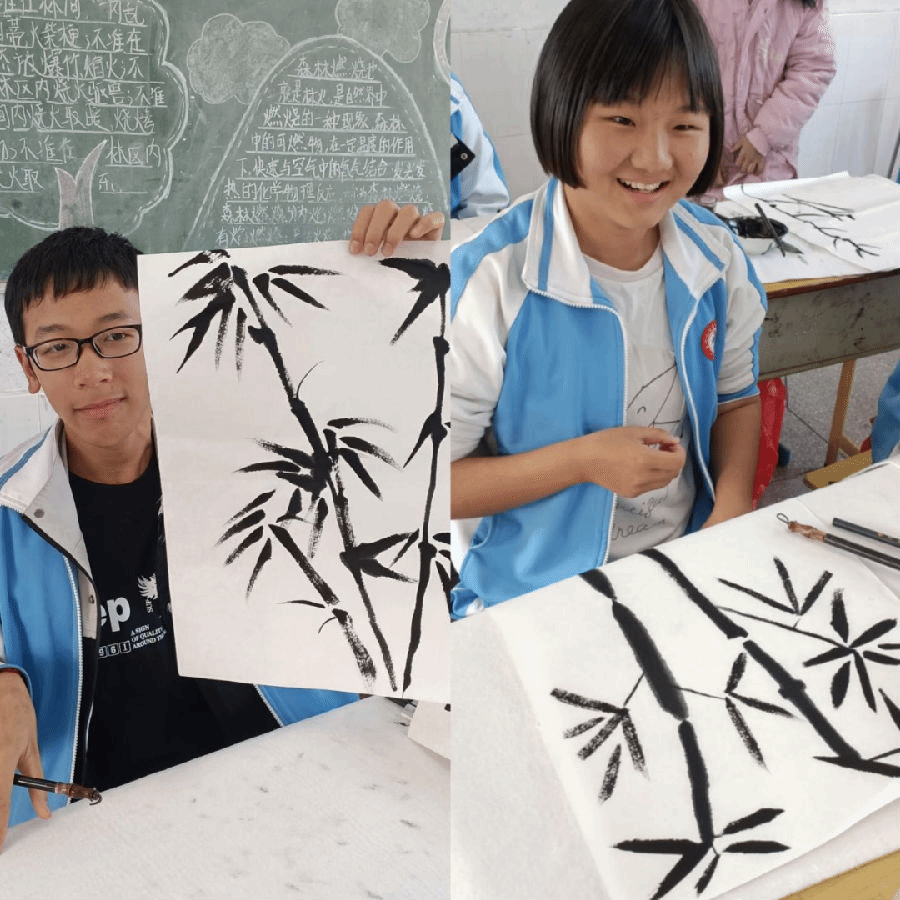 经过不断的练习,坝头学校的学生们纷纷完成了自己人生中的第一幅国画作品,遇到问题老师们耐心讲解,课堂氛围其乐融融。同学们表现对中国传统文化浓浓的兴趣,有趣的一节课在同学们愉悦的呼声中渡过,国画课圆满结束!