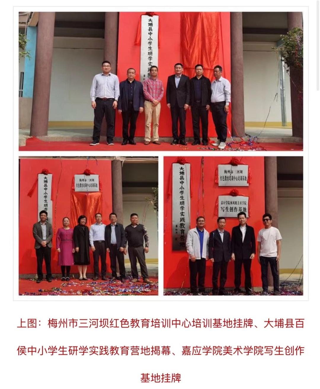 嘉应学院副校长罗嘉文,嘉应学院林风眠美术学院院长、梅州市美术家协会主席张志祥,嘉应学院林风眠美术学院党委书记彭永彬,丰顺县政府副县长李吉祥以及市县有关部门相关负责人参加由丰顺县东海中学举办的嘉应学院林风眠美术学院实习基地、梅州市美术家协会实践基地、丰顺县美术家协会实践基地揭牌仪式。 自我院1990年开始创办以来,着力培养艺术人才,倾力推进艺术科研,成绩斐然。