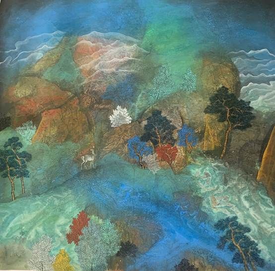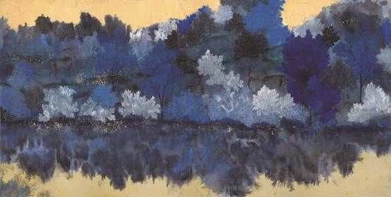 《密林湖》纸本设色,70×138cm,2021年