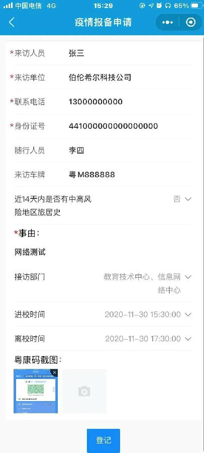 如校外人员有因公事务需入校办理,需先于嘉应学院网上办事大厅小程序填报入校申请,等待审批成功后方可入校办理业务。1.登录嘉办事长按扫描下方二维码,进入「嘉办事」小程序校外人员入校报备页面。2.填写申报信...